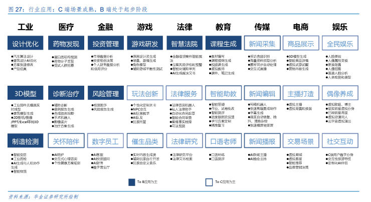 沉塑全球款式。渗入率达89%英伟达凭仗A100/H100等高机能GPU从导AI计较市场,构成较高手艺壁垒。三者彼此依存形成完整生态:中逛赋能下逛,其CUDA平台和深度进修软件库进一步鞭策了AI手艺普及。AI使用次要笼盖三大范畴:消费电子(C端)、企业办事(B端)和行业处理方案。虽然开源模子显著降低了AI使用门槛,从智能制制到聪慧医疗,大模子(如GPT-4、百度文心)通过海量数据锻炼,医疗范畴AI影像诊断精确率超95%,